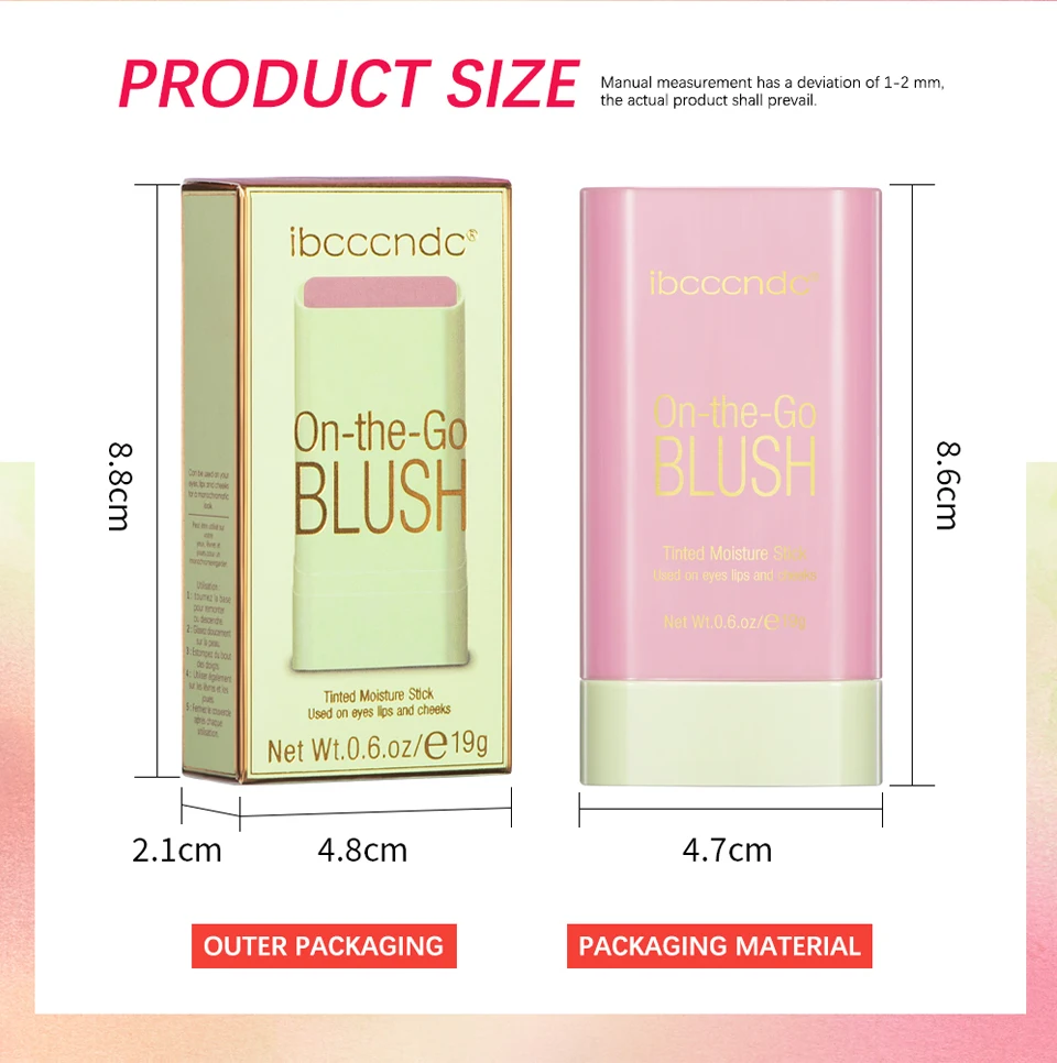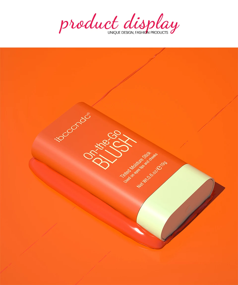 Esse produto da imagem é o On-the-Go Blush Stick da marca Ibcccndc, um blush em bastão compacto e portátil.