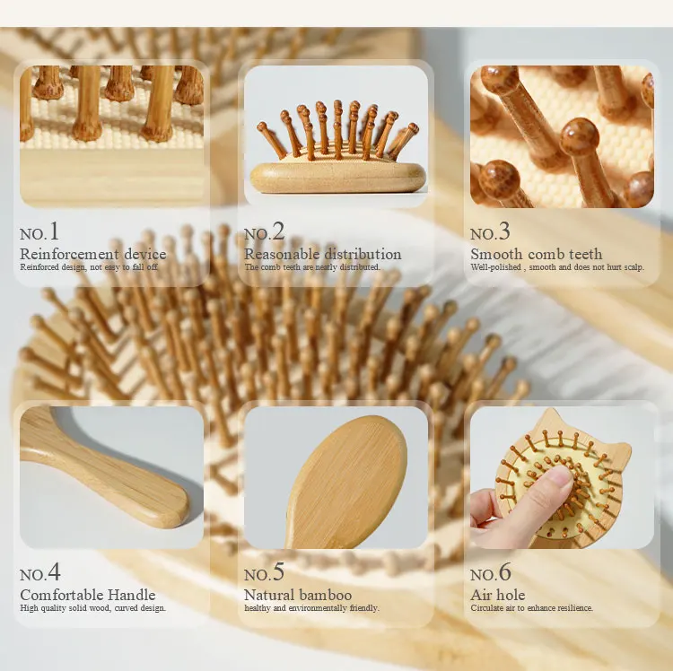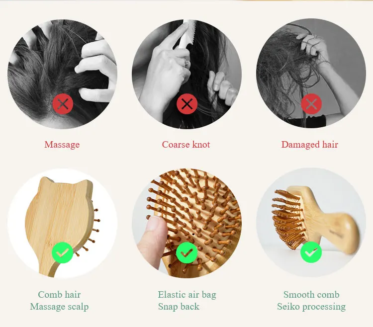Bamboo Hair Brush Air Bag Dentes largos Pentes de bambu Massagem suave Escova do couro cabeludo Pente barbeiro Mulheres cabeleireiro Styling Ferramentas de cabelo