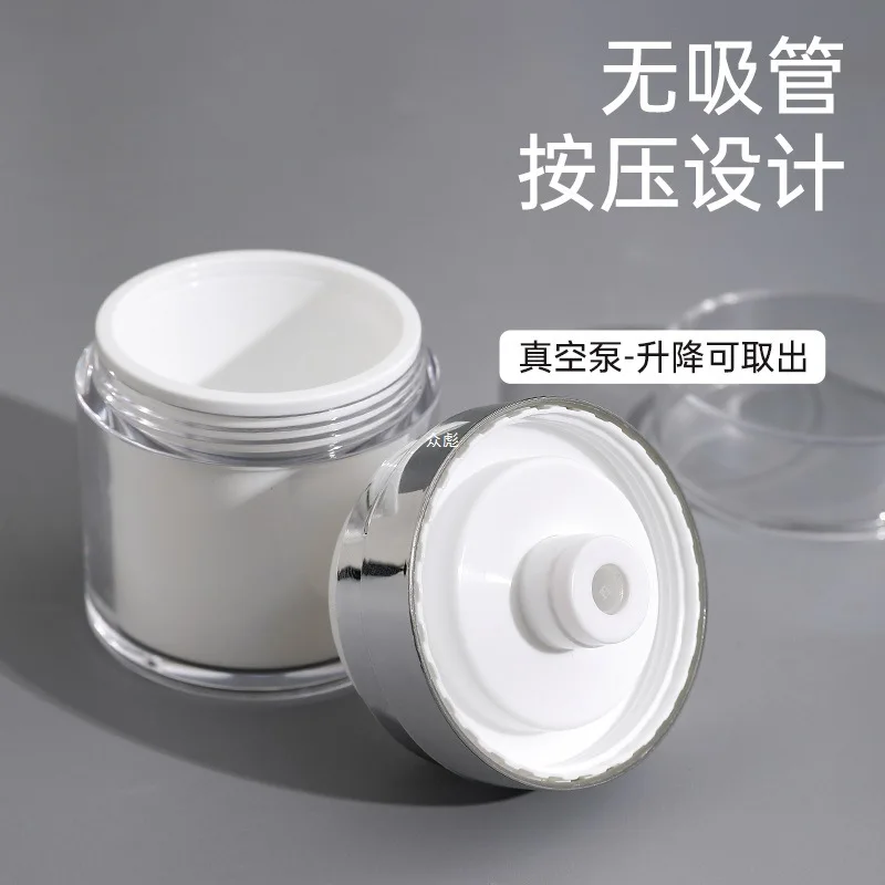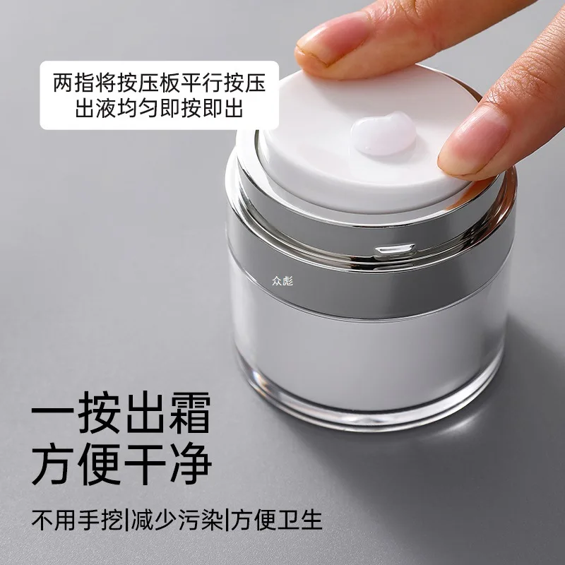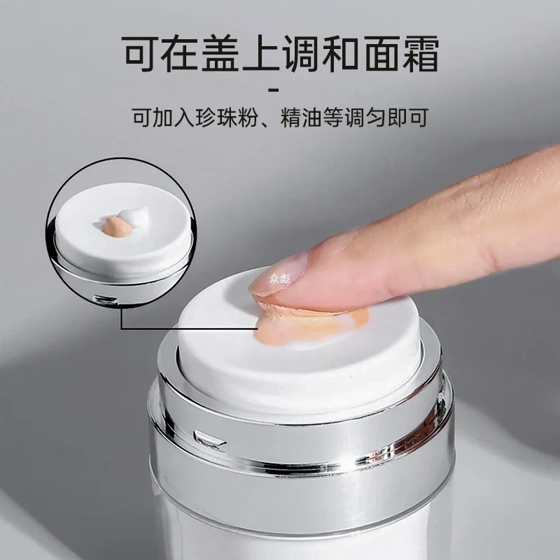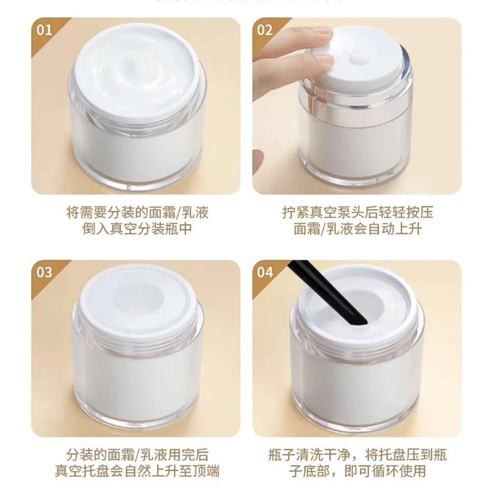 Você precisa inicialmente encher o frasco até o topo com o produto desejado para criar o vácuo.