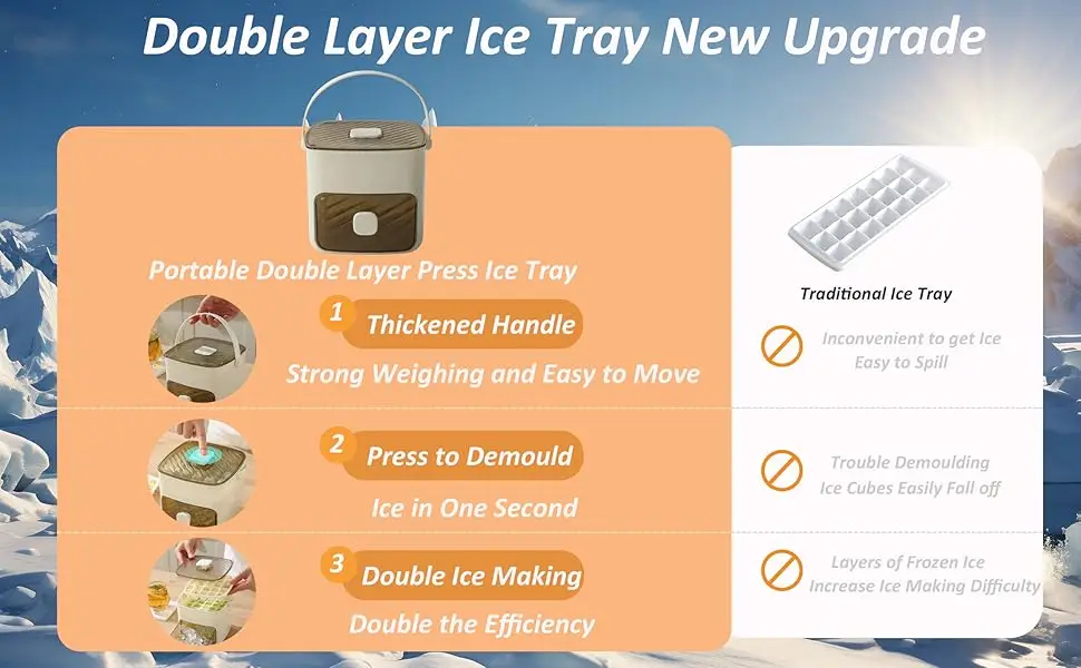 Alça antiderrapante + tampa selada, carregue-a a qualquer hora, em qualquer lugar, para evitar que os cubos de gelo derretam ou absorvam odores da geladeira.